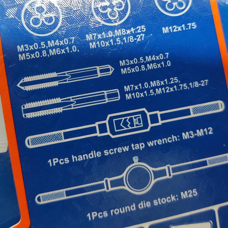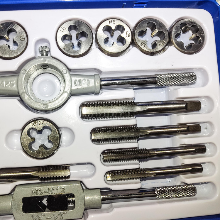 شامل 8 عدد حدیده و 9 عدد قلاویز و یک عدد دسته قلاویز گردان افقی و یک عدد عمودی