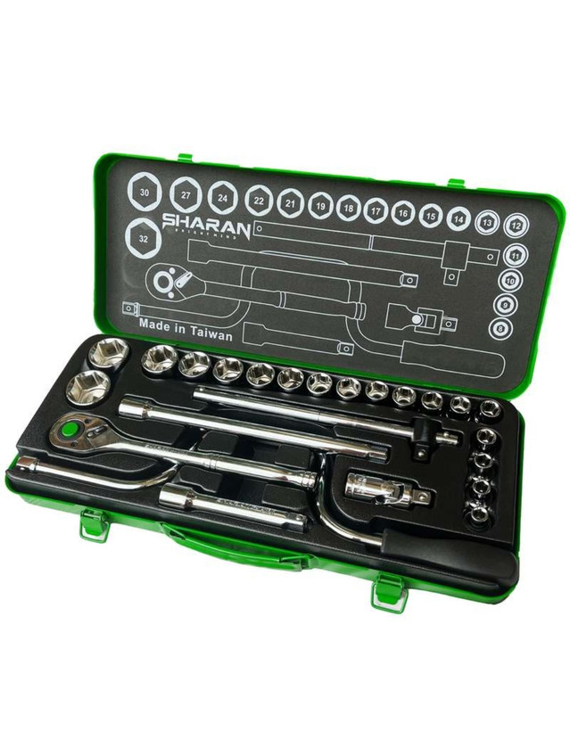 دارای یک عدد دسته جغجغه بسیار با کیفیت و ریز دنده-یک عدد دسته هندلی -یک عدد دسته کشویی -دوعدد واسطه 10 و 5 اینچ و یک عدد لغلغه