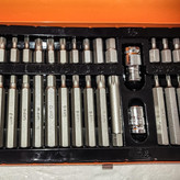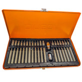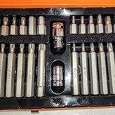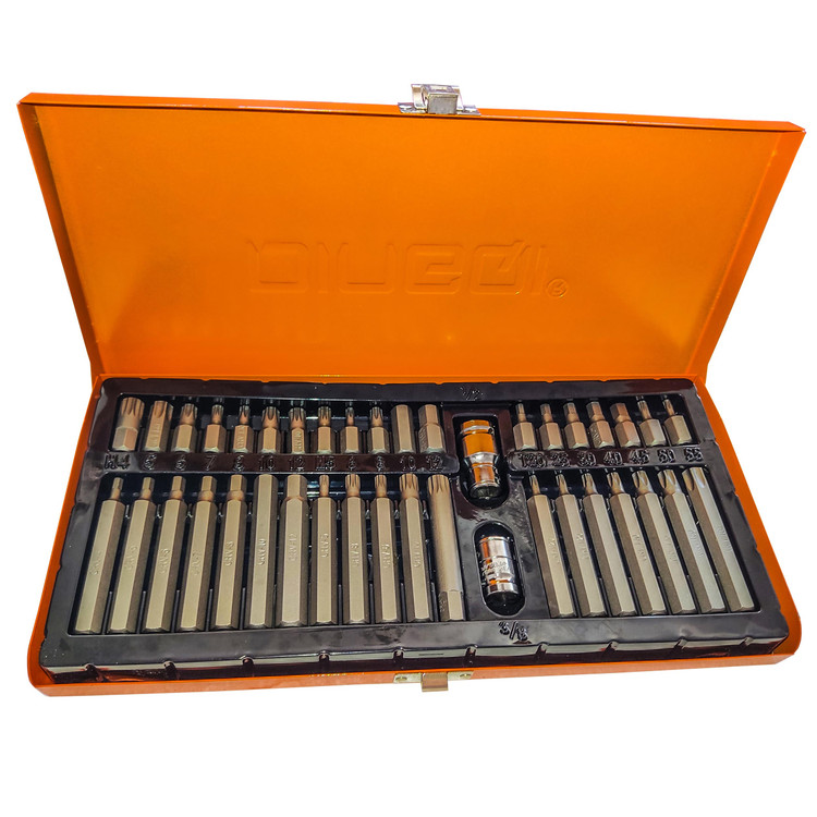 جعبه 40 پارچه بیتدینگشی ساخت چین شامل 7 عدد بیت آلنی بلند 7 سانتی در سایز های (H4-H5-H6-H7-H8-H10-H12) وبیت آلنی کوتاه 3 سانتی در سایز های (H4-H5-H6-H7-H8-H10-H12) و بیت ستاره ای بلند 7 سانتی در سایز های( T20-T25-T30-T40-T45-T50) و بیت ستاره ای کوتاه در سایز های ( T20-T25-T30-T40-T45-T50 ) و بیت خورشیدی ( هزار خار ) در سایز های (M5-M6-M7-M8-M10-M12 ) و دو عدد هولدر میباشد که در جمع 40 عدد میباشد این جعبه از کیفیت عالی و صنعتی برخوردار میباشد ومخضوض کار های صنعتی و مکانیکی میباشد